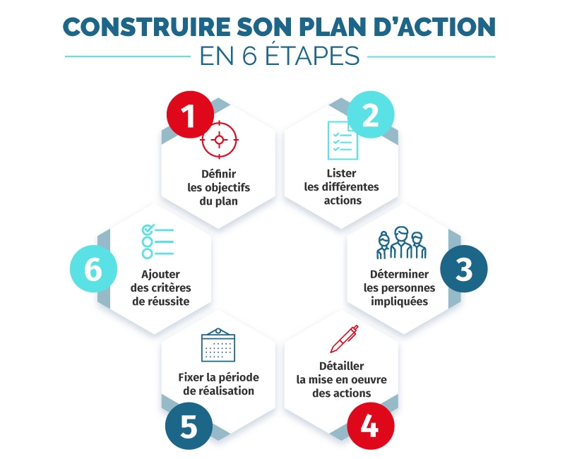 Identification des priorités, objectifs d'amélioration, responsabilités assignées, calendrier de mise en œuvre, budget.