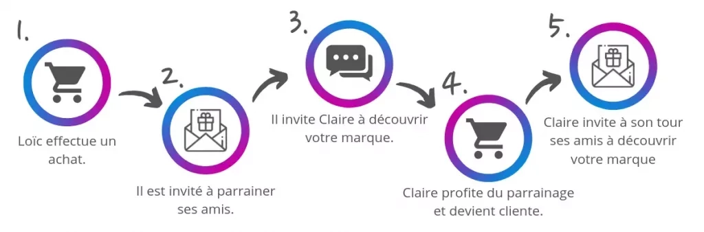 Programmes de parrainage, incitation au bouche-à-oreille, récompenses pour prescripteur et client, viral marketing.